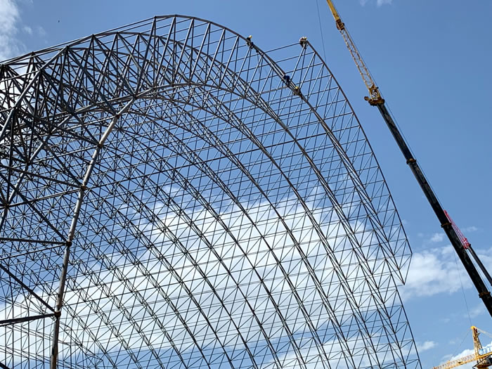 (2)网架加工前应对现场尺寸进行复测,确认无误后方可进行加工、安装;网架制作、运输、安装应遵守《空间网格结构技术规程》JGJ7-2010、《钢网架眉山螺栓球节点》JG/T 10-2009、《钢网架眉山螺栓球节点用高强度螺栓》 GB/T 16939-2016、《眉山钢结构眉山工程眉山施工规范》 GB50755-2012、《眉山钢结构眉山工程眉山施工质量验收标准》 GB50205-2020。
